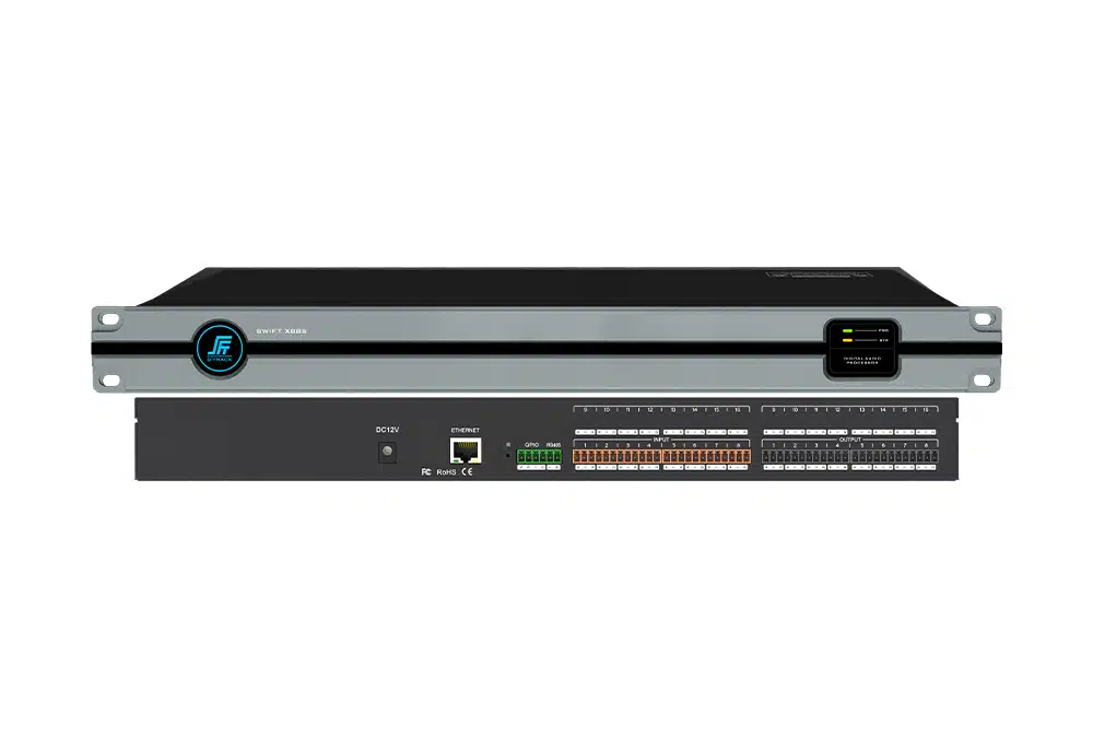 The digital signal processor equipped with a high-performance 32-bit floating-point DSP processor and A/D ~ D/A converter, support for 24bit/48KHz sampling frequency, high quality 8-stage preamplifier circuit, DSP processing bus structure built-in feedback cancellation, echo cancellation, noise suppression, automatic mixing and other audio core algorithms, to restore high-quality sound, with a comprehensive matrix mixing function It supports multiple scene presets, scene saving and other functions, and user-friendly control software interface. Mainly used in a variety of large places, can meet the theatre, concert halls, remote video conferencing, stadiums, churches, conference center, theme parks, public sound reinforcement systems and other aspects of the application needs.