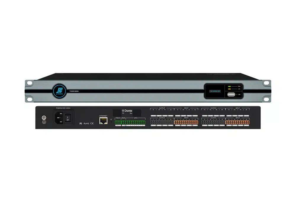 The Digital Signal Processor equipped with a high-performance 32-bit floating-point DSP processor and A/D ~ D/A converter, support for 24bit/48KHz sampling frequency, high-quality 17-stage preamplifier circuit, DSP processing bus structure built-in feedback cancellation, echo cancellation, noise suppression, automatic mixing and other audio core algorithms, to restore high-quality sound, with a comprehensive matrix mixing function It supports multiple scene presets, scene saving and other functions, and user-friendly control software interface. Mainly used in a variety of large places, can meet the theatre, concert halls, remote video conferencing, stadiums, churches, conference center, theme parks, public sound reinforcement systems and other aspects of the application needs.