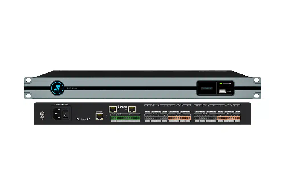The Digital Signal Processor equipped with a high-performance 32-bit floating-point DSP processor and A/D ~ D/A converter, support for 24bit/48KHz sampling frequency, high-quality 17-stage preamplifier circuit, DSP processing bus structure built-in feedback cancellation, echo cancellation, noise suppression, automatic mixing and other audio core algorithms, to restore high-quality sound, with a comprehensive matrix mixing function It supports multiple scene presets, scene saving and other functions, and user-friendly control software interface. Mainly used in a variety of large places, can meet the theatre, concert halls, remote video conferencing, stadiums, churches, conference center, theme parks, public sound reinforcement systems and other aspects of the application needs.